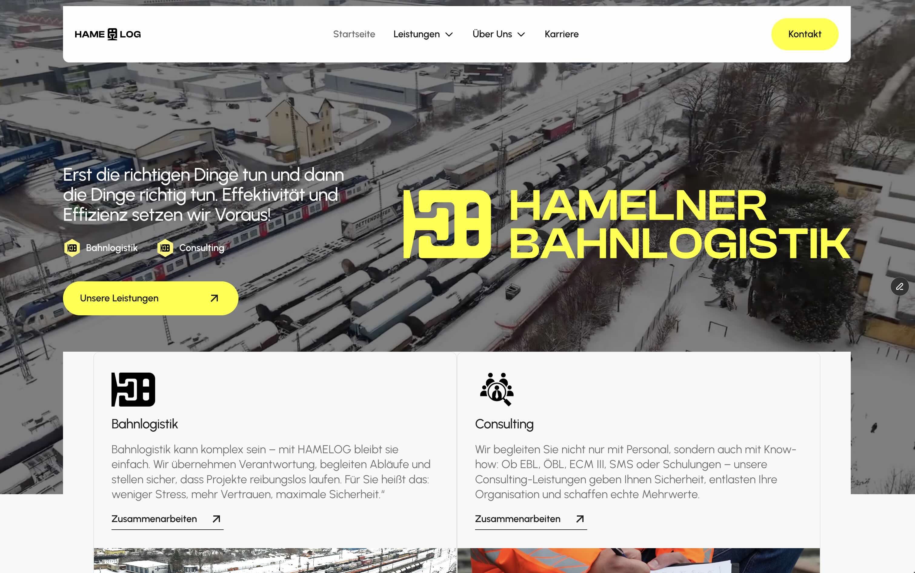 Der neue Webauftritt positioniert HAMELOG als kompetenten und strukturierten Partner in der Bahnlogistik. Die Website schafft Vertrauen ab dem ersten Kontakt und führt Besucher gezielt zur Zusammenarbeit.